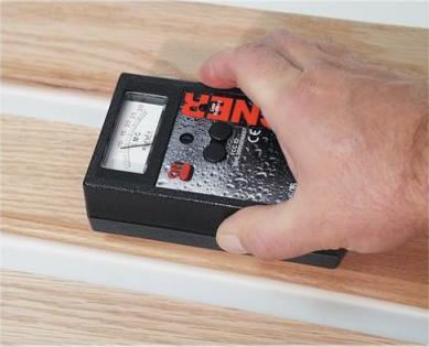 高周波感應式,無測針,不會破壞木材表面完整,成品半成品皆可,如傢俱、地板等。具備自動斷電設備60秒,操作簡單、攜帶方便。